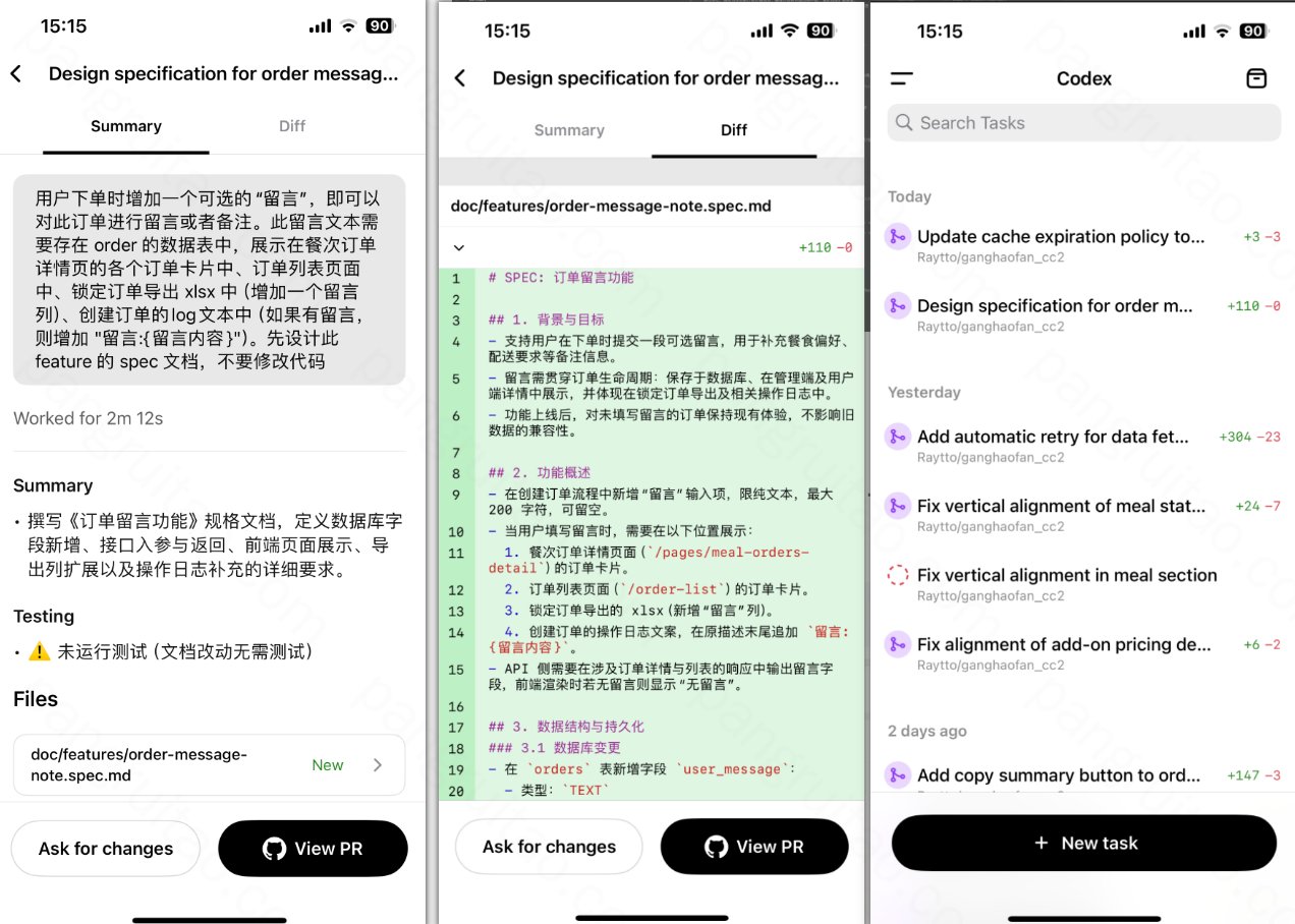 - 先提潦草的需求,再让 Codex 基于我的需求并结合工程目前的情况下细化下来的,我再 Review。
